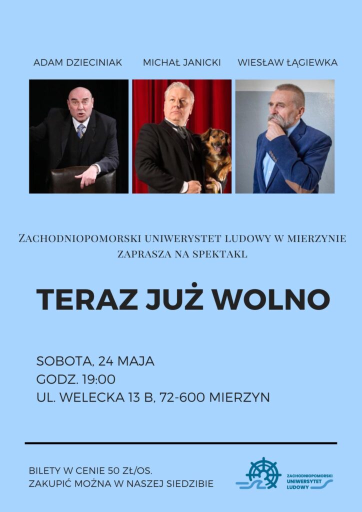 Serdecznie zapraszamy na spektakl TERAZ JUŻ WOLNO, który odbędzie się w sobotę, 24 maja o godz. 19:00